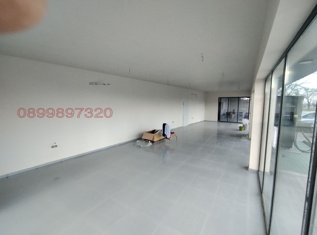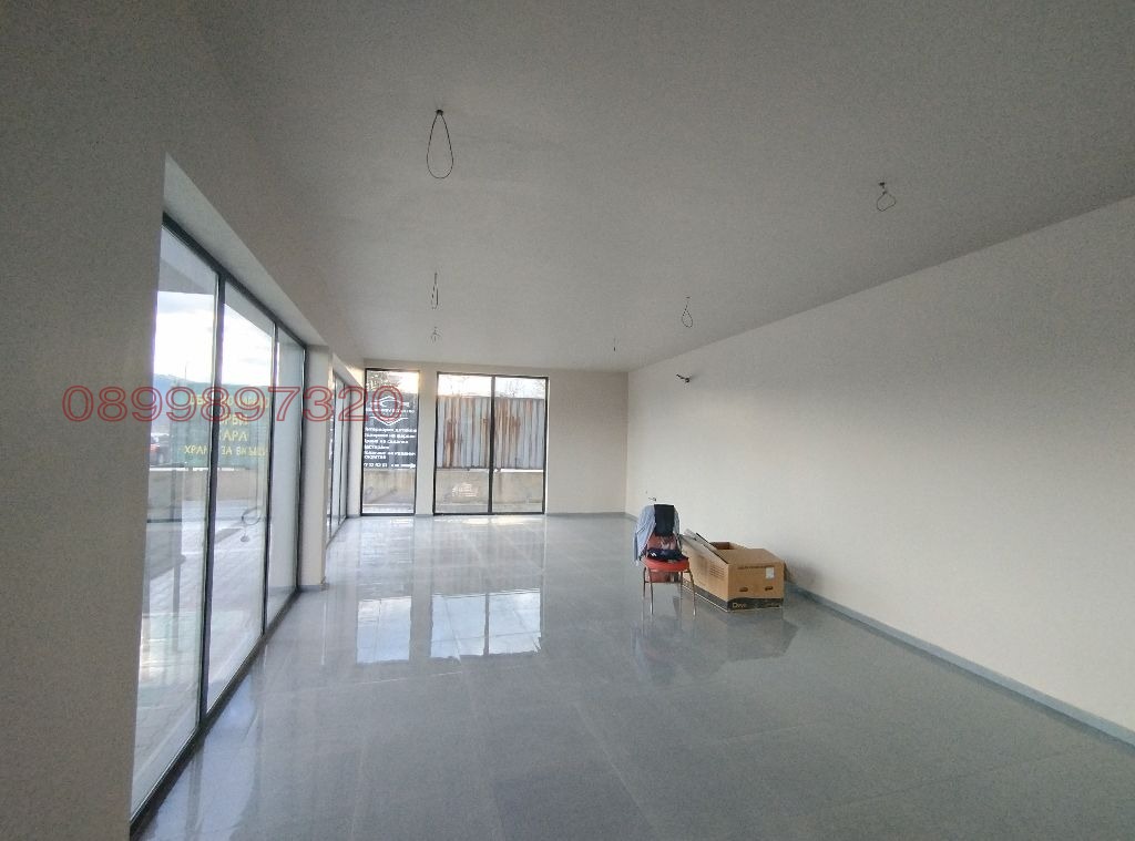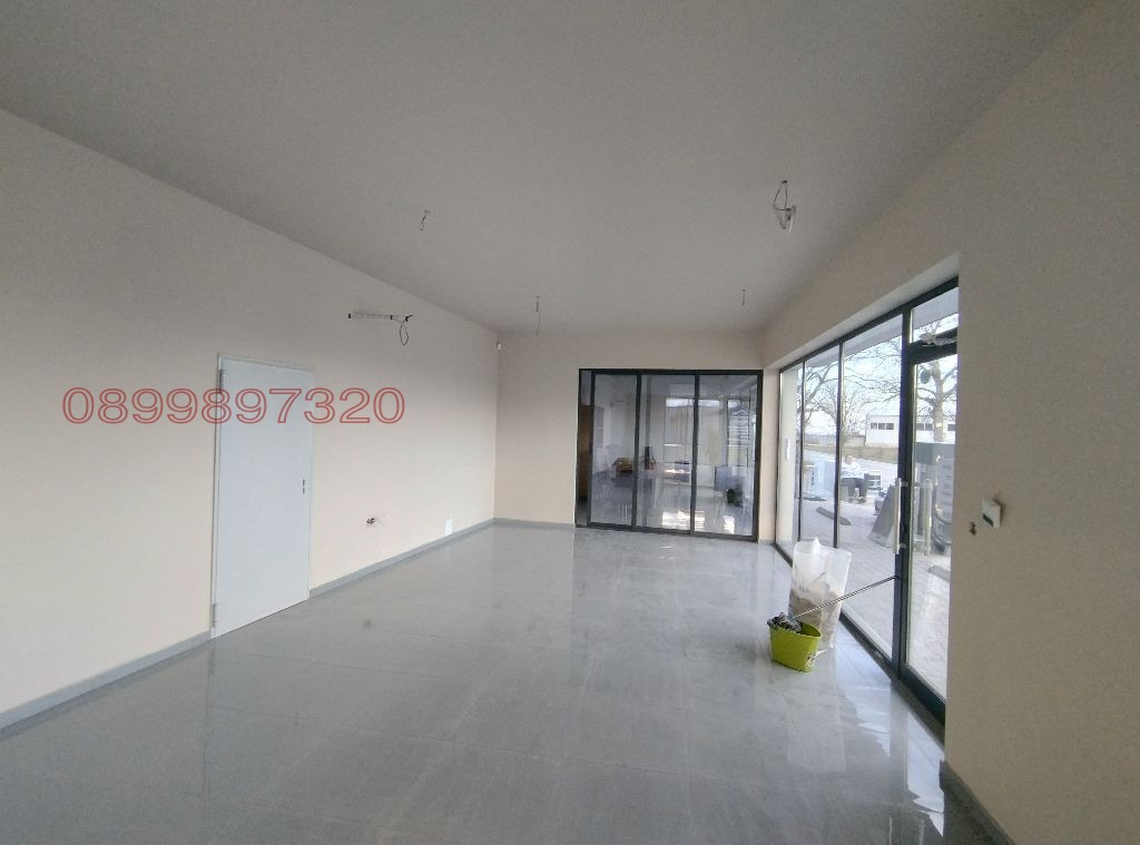 Отдавам под наем чисто ново помещение ~80 кв.м с прилежащи 2 склада и тоалетна (~9 кв.м) на главен път с отлична видимост.
