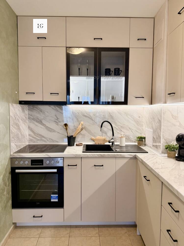 Апартаментът е напълно оборудван и готов за нанасяне, като предлага всички необходими удобства за комфортно ежедневие. На разположение на наемателите са съдомиялна машина с голям капацитет, пералня, сушилня, голям хладилник, кафе машина, както и пълна посуда.