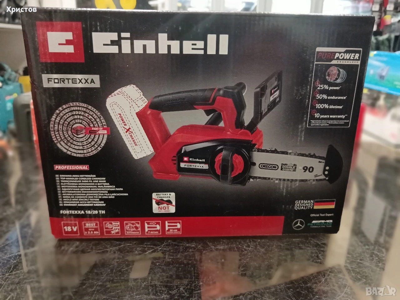 Ново Цена 150.00 € Акумулаторен верижен трион Einhell плюс батерия и зарядно и гаранция. FORTEXXA 18/20 TH.
