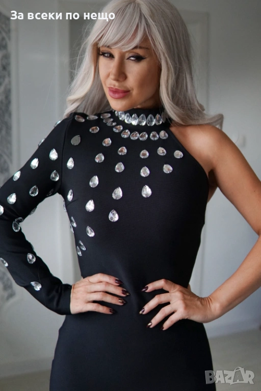 Дамска Черна Елегантна Официална Рокля С 1 Ръкав И Камъни За Специални Поводи Код Roni16 → Обява 53807668