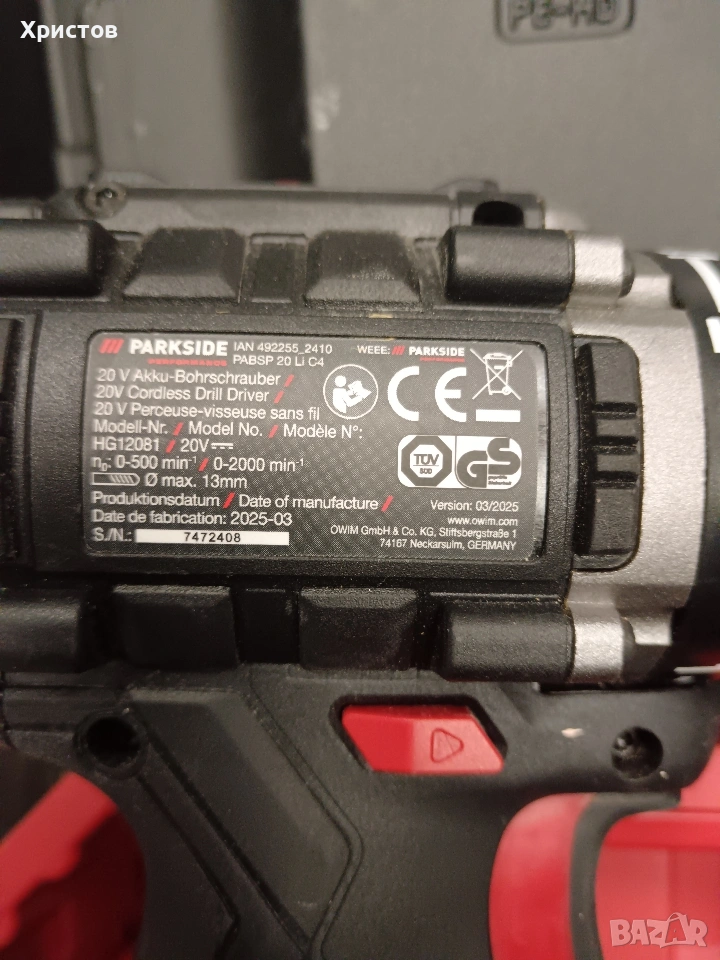 Акумулаторен винтоверт Parkside Performance PABSP 20-Li C4. → Обява 53807672