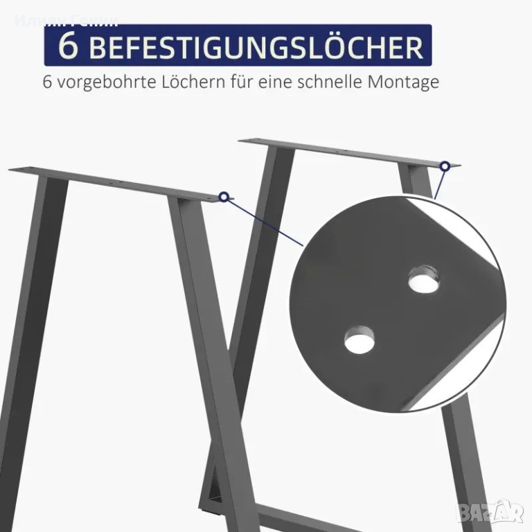 Трапецовидни крака за маса HOMCOM, комплект от 2, метални, предварително пробити, с винтове - 45.00 €.
