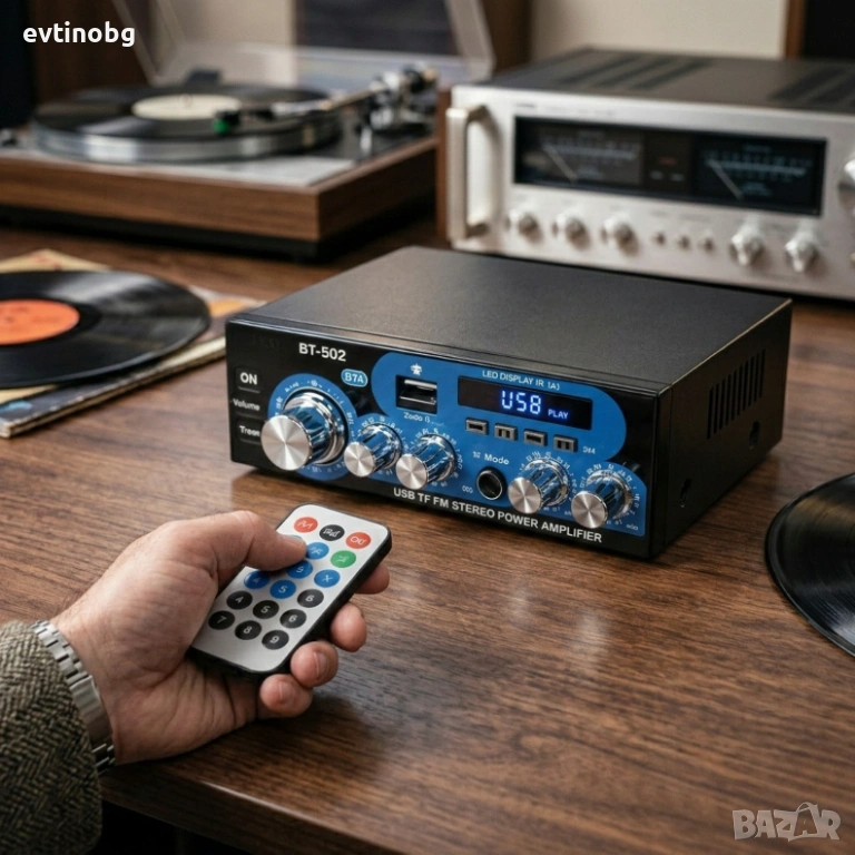Аудио усилвател с МР3 плейър, LCD дисплей и дистанционно управление – 30W+30W