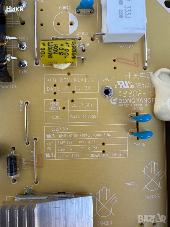 Power Board BN4401100G / L55E7_BDY от телевизор SAMSUNG QE50Q60BA Платката е работеща и свалена от работещ телевизор със счупен дисплей. Модела на дисплея е CY-QB050HGEV2V. Изпращам по ЕКОНТ с опция тест и преглед!!! С оглед и проба на това, че модулите нямат гаранция, след прегледа, теста и заплащането не приемам възражения и ракламации, щото предварително всички платки и модули са тествани и в изправно състояние се пращат!!!