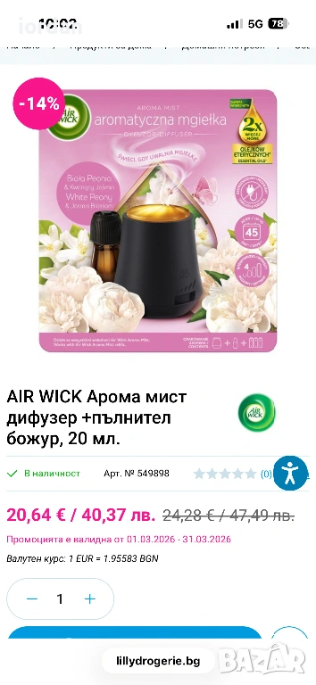 AIR WICK Арома мист дифузер +пълнител божур, 20 мл., снимка 1 - Други - 53808321 AIR WICK Арома мист дифузер +пълнител божур, 20 мл., снимка 2 - Други - 53808321 1/2