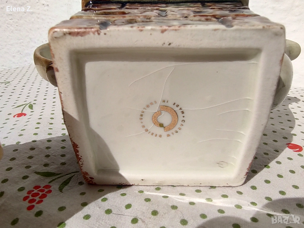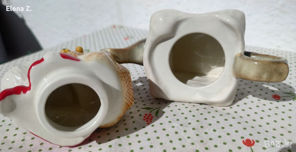 Има кракле на места, и леко протъркване по ръба на подаръчето, което е нормално за тези колекционерски чайници, които отдавна вече не се произвеждат.
