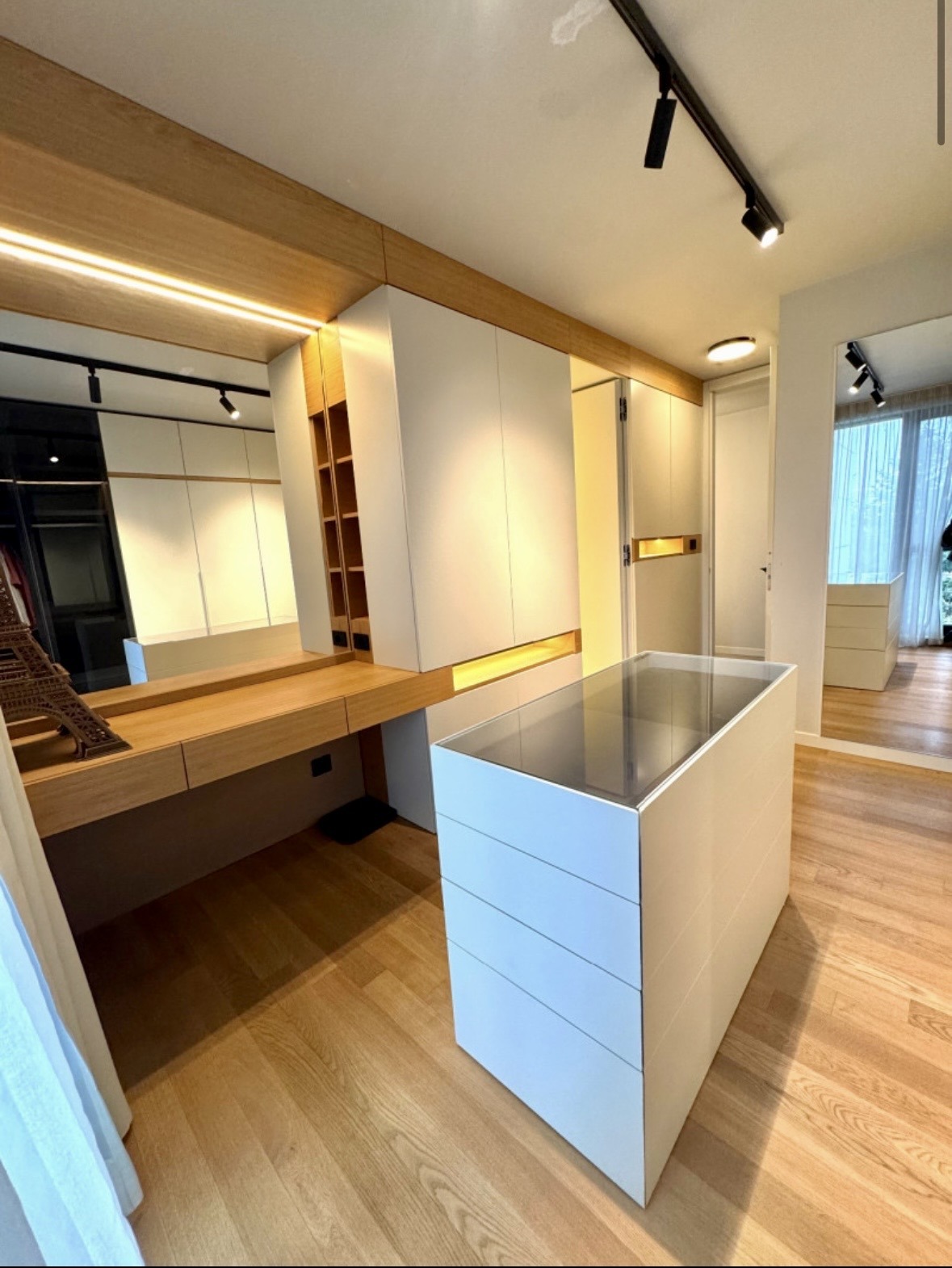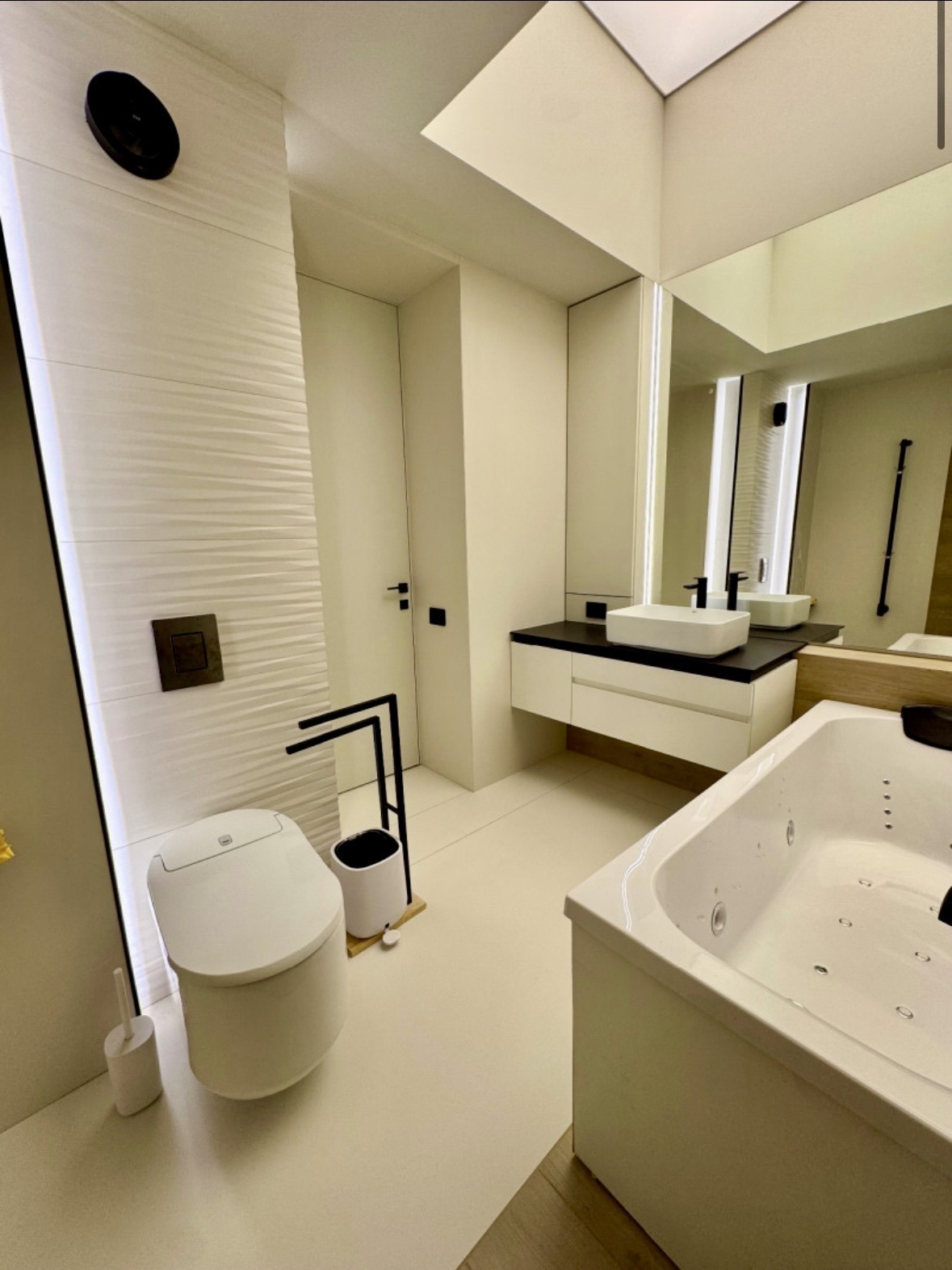 -Основна спалня (Master Bedroom) със самостоятелен, просторен дрешник с гардероби и тоалетка за бижута, както и луксозна собствена баня с хидромасажна вана и смарт тоалетна с дистанционно управление;