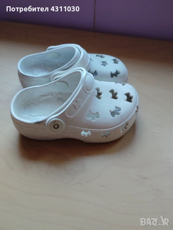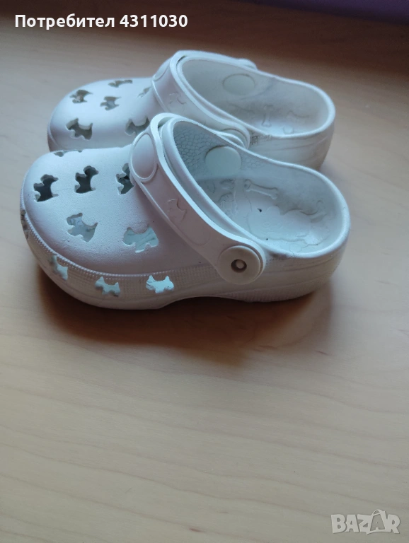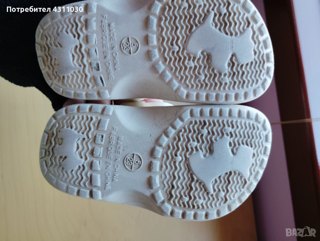 Бели гумени детски чехли употребявани номер 23 → Обява 53808429
