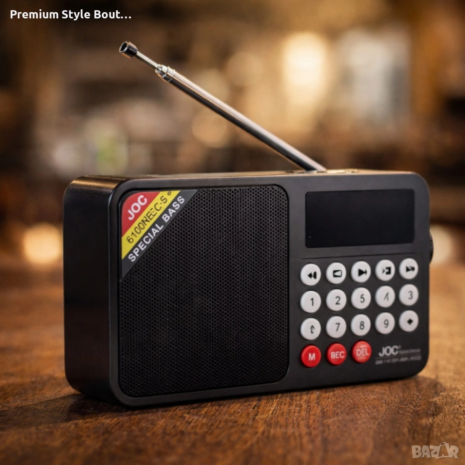 Технически характеристики на Соларно портативно радио JOC H6108REC-S с Bluetooth, FM радио и MP3 плеър Ключови спецификации Мощност: 3 W RMS FM радио обхват: 87.5 – 108 MHz Възпроизвеждане: MP3, FM, Bluetooth, USB, microSD Батерия: Li-ion 18650 (вграден акумулатор с дълъг живот) Дисплей: голям, лесно четим Жак за слушалки: да Антена: телескопична за по-добър прием Размери: 13,5 x 6,5 x 3,5 см доставка с Еконт с опция преглед и тест до 3 работни дни