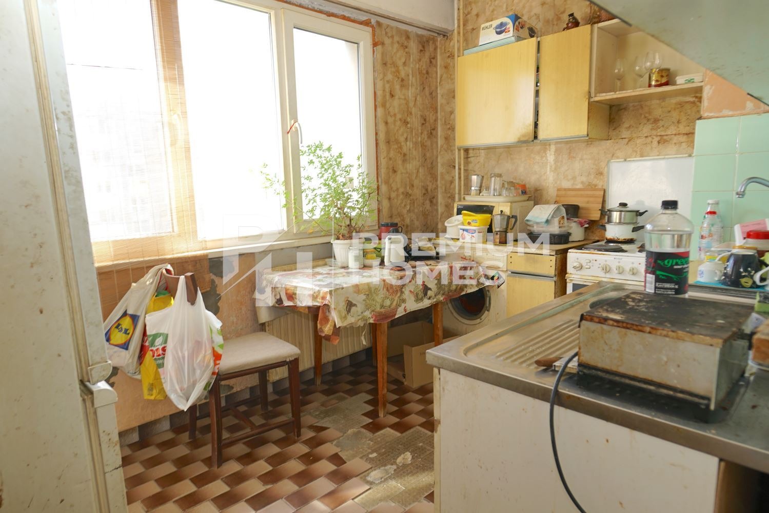Жилището е за ОСНОВЕН РЕМОНТ. Площта по документ за собственост е 65,48 кв.м. без терасите, които са общо около 8 кв.м., както и отделно мазе 5.77 кв.м. За ваше улеснение прилагаме схема на разпределение на имота.