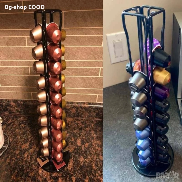 Стойка тип вертикален органайзер кафе капсули. Спестява място побирайки