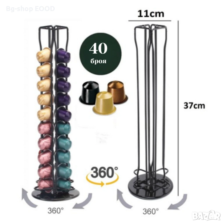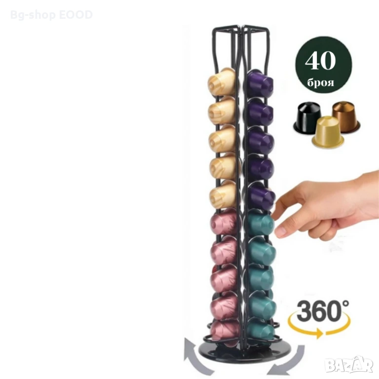 Стойката тип вертикален органайзер побира цели 40 броя кафе капсули.