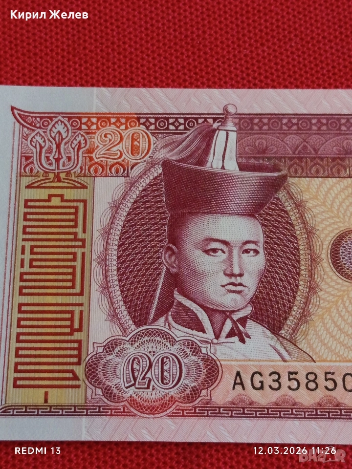 Банкнота МОНГОЛИЯ много красива перфектно състояние непрегъвана за КОЛЕКЦИЯ ДЕКОРАЦИЯ 54062 → Обява 53809450