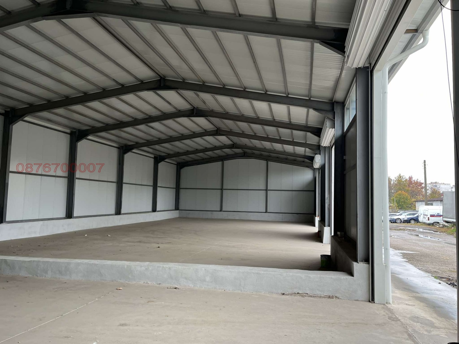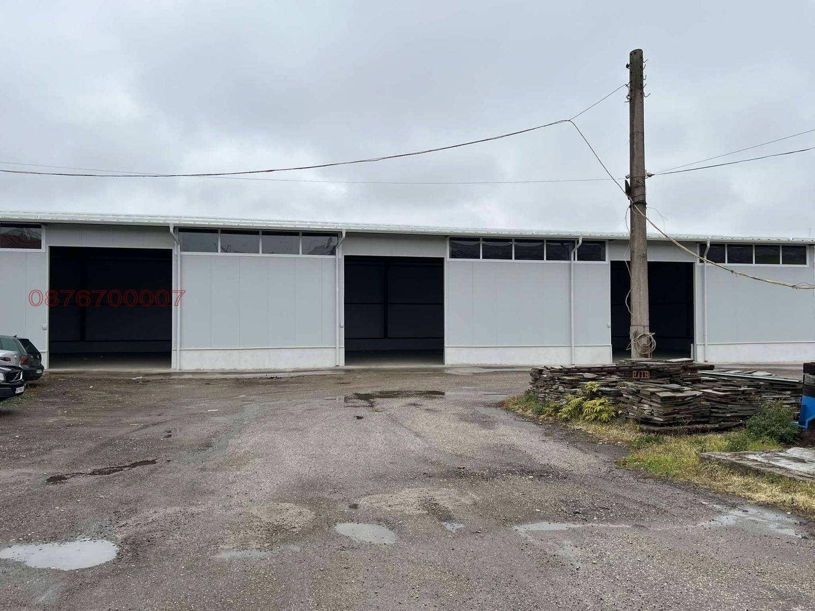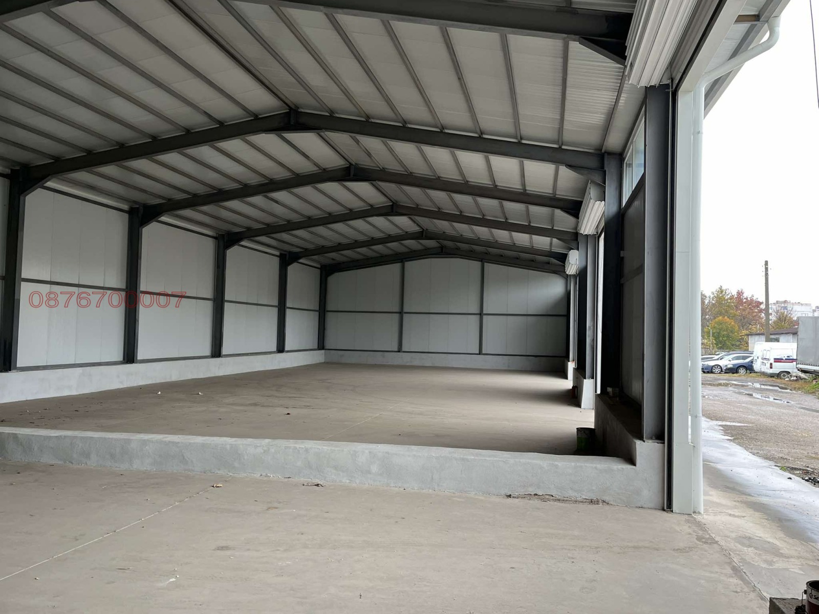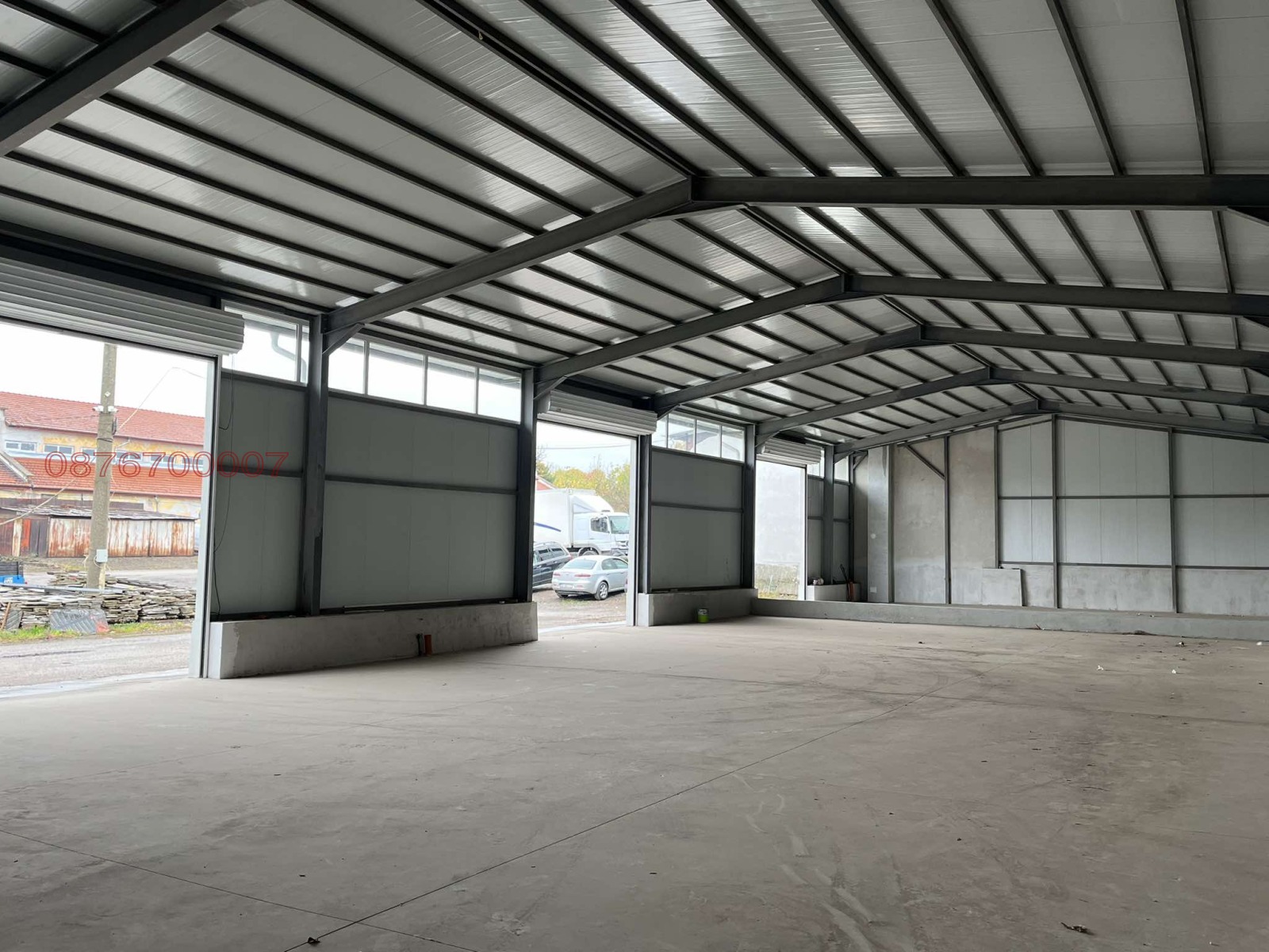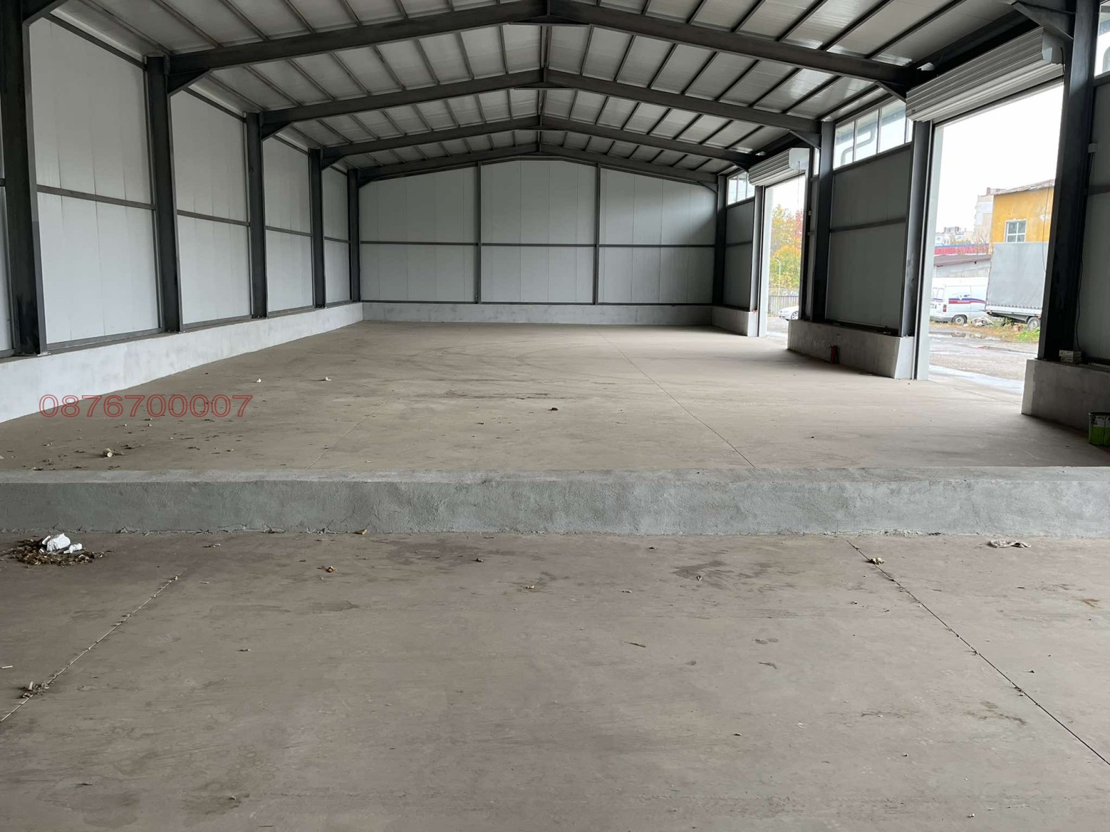 нов склад, 3 портала, може да се раздели на 3 ( посочената цена е за цялото помещение ), шлайфан бетон, вода, ток, канал.