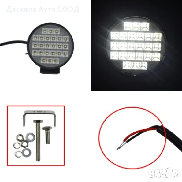 LED работна лампа, фар, кръгъл, 24W, 12/24V, с on/off ключ