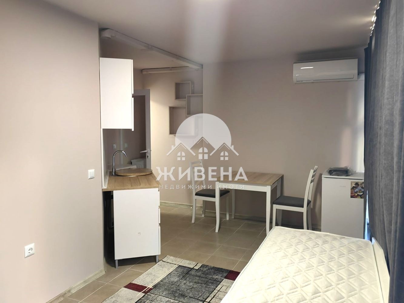 Агенция Живена отдава под наем обзаведено студио, с площ от 23 кв.м, разположено на партерно ниво в жилищна сграда в района между Автогара и Колхозен пазар. Състои се от една стая, баня с душ и тоалетна. Предлага се след основен ремонт и освежаване, с ново обзавеждане, във вида на снимките. Разполага с климатик, малък хладилник и пералня. Входът на помещението е откъм главна оживена улица. Подходящо е също за офис, кантора, кабинет, магазин и др. За повече информация и огледи, моля, обадете се на посочения номер за връзка. Оферта 6710