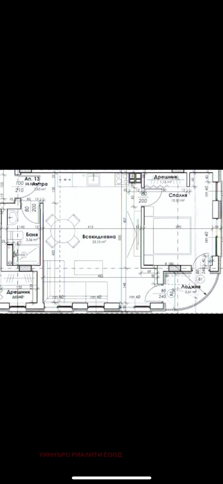📐Разпределение: входно антре, дневна с кухня и трапезария, спалня с дрешник, баня и wc, склад, тераса