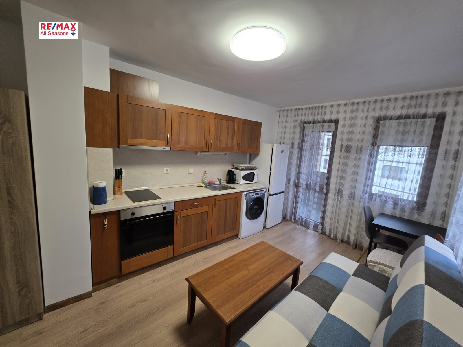 Апартаментът се състои от две стаи, включително една спалня и обновена баня с тоалетна в едно помещение. Балконът предлага зашеметяваща гледка към планината, което го прави перфектно място за отдих. Интериорът е изцяло обновен и обзаведен с включено оборудване, като електрическото отопление и кафявите шкафове придават уют и топлина.