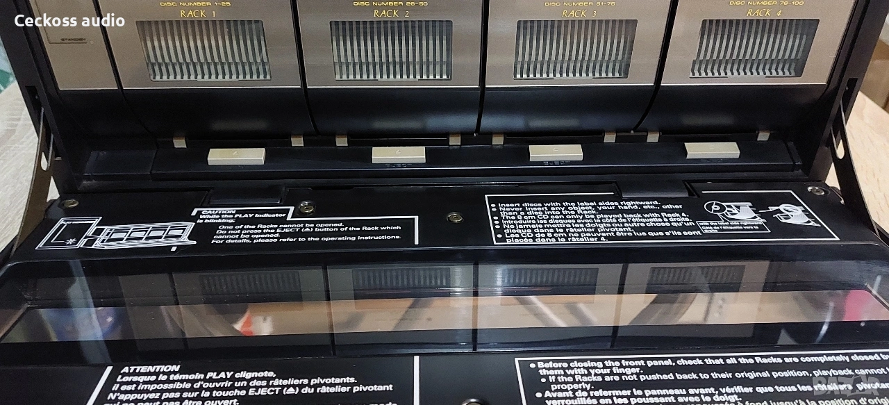 По време на възпроизвеждане само стелажът с текущия диск остава заключен, което позволява смяна на други дискове без прекъсване на музиката.
