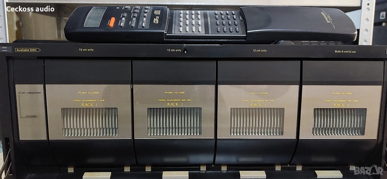 Дистанционно управление: Оригиналният модел често се доставя с дистанционно (модел CU-P074), което позволява директен достъп до конкретни стелажи и дискове.