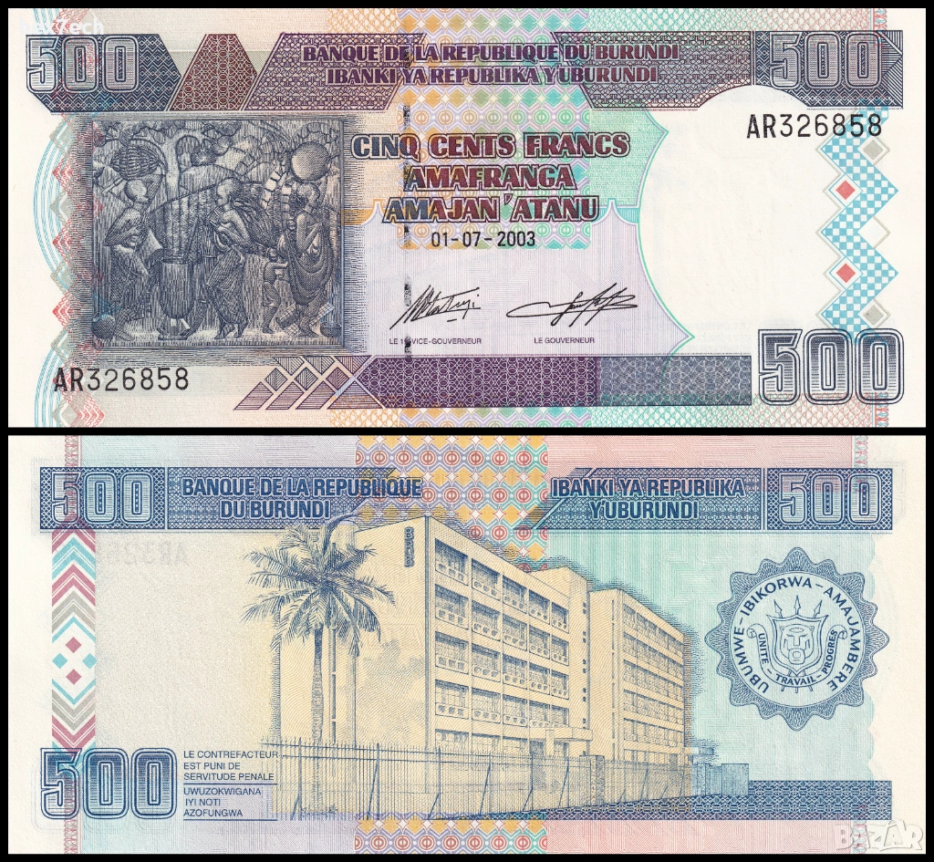 ❤️ ⭐ Бурунди 2003 500 франка UNC нова ⭐ ❤️, снимка 1 - Нумизматика и бонистика - 53810533 ❤️ ⭐ Бурунди 2003 500 франка UNC нова ⭐ ❤️, снимка 2 - Нумизматика и бонистика - 53810533 ❤️ ⭐ Бурунди 2003 500 франка UNC нова ⭐ ❤️, снимка 3 - Нумизматика и бонистика - 53810533 1/3