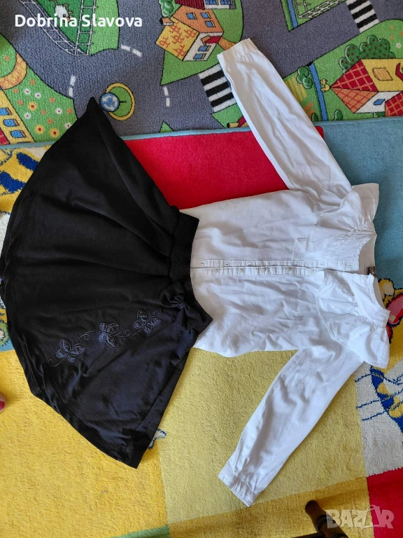 Черна пола и бяла блуза за размер 128 см. за момиченце.