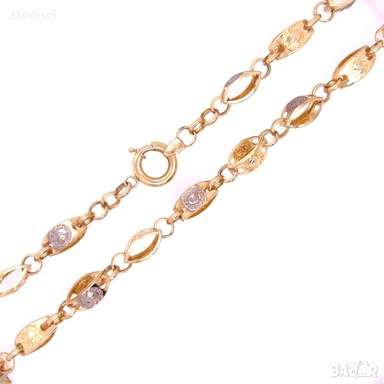 Златен синджир Versace 13,54гр. 61,0см. 14кр. проба:585 модел:35066-3, снимка 1 - Колиета, медальони, синджири - 53810981 Златен синджир Versace 13,54гр. 61,0см. 14кр. проба:585 модел:35066-3, снимка 2 - Колиета, медальони, синджири - 53810981 1/2