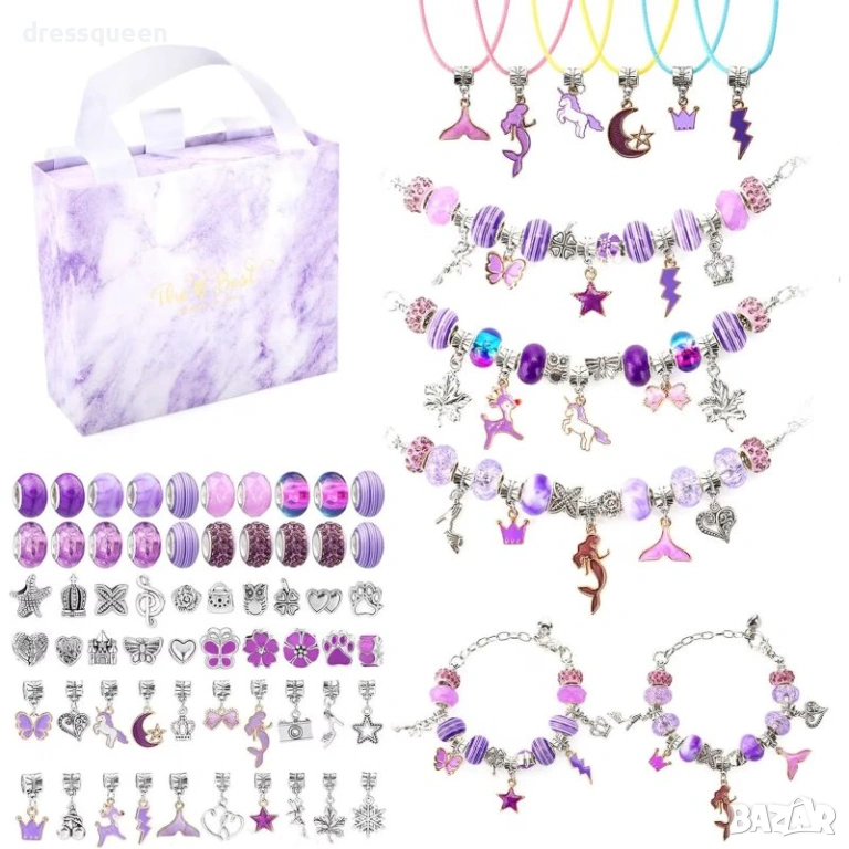 Подарък за Момиче: Комплект за Гривни с Талисмани (68 в 1)