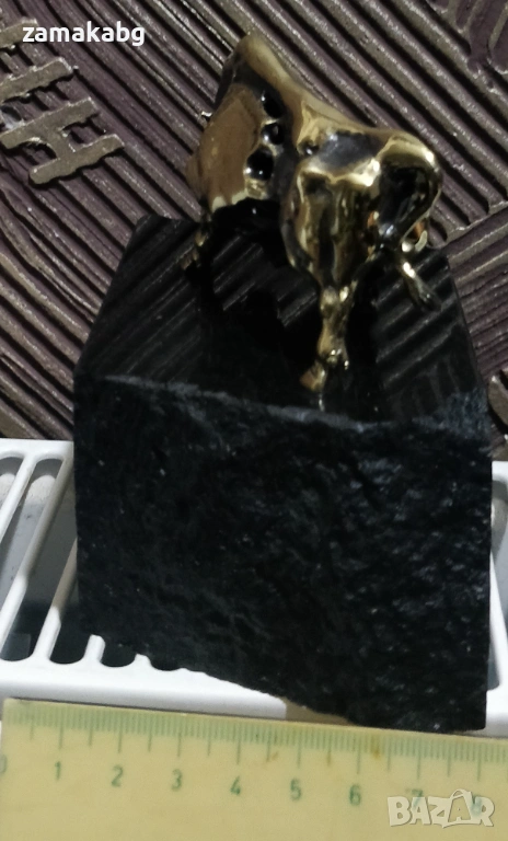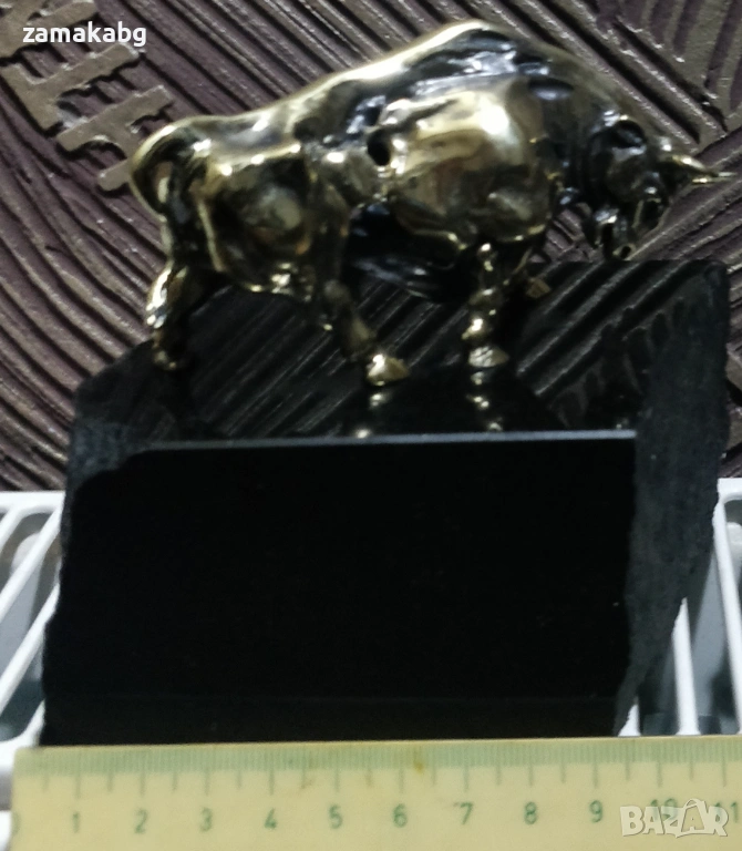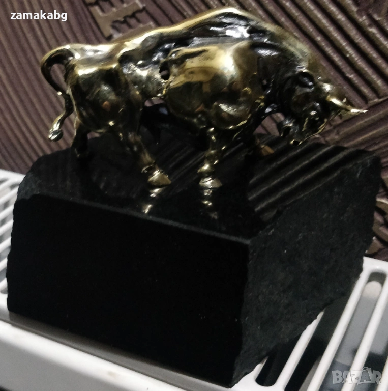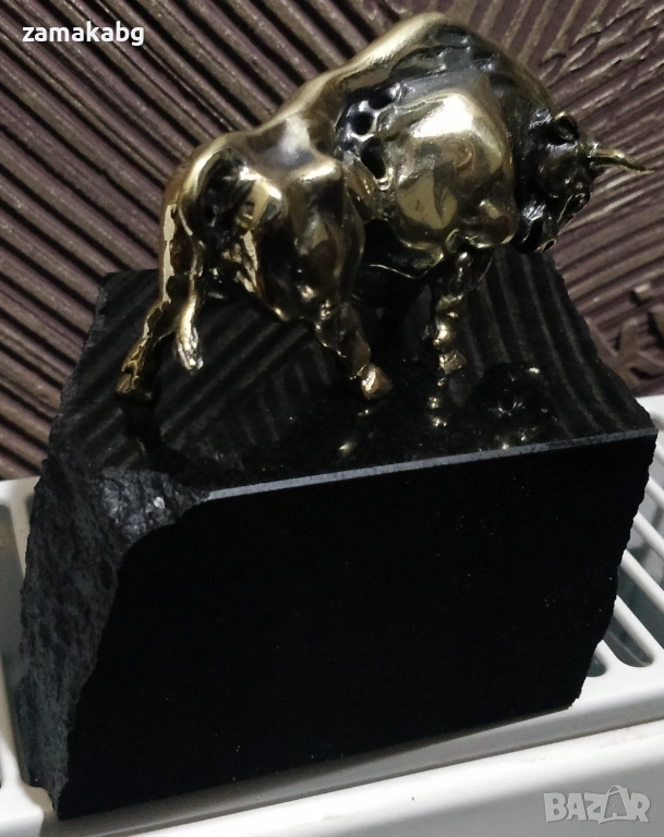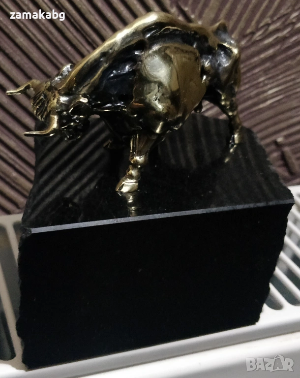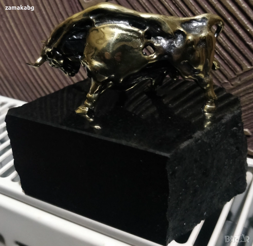 Бронзова пластика бик с поставка естествен камък черен гранит → Обява 53810994