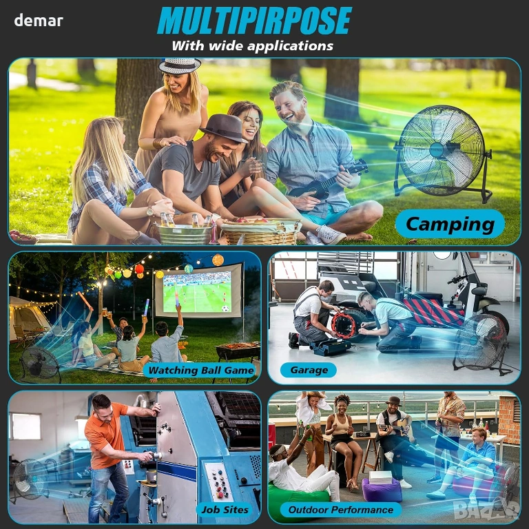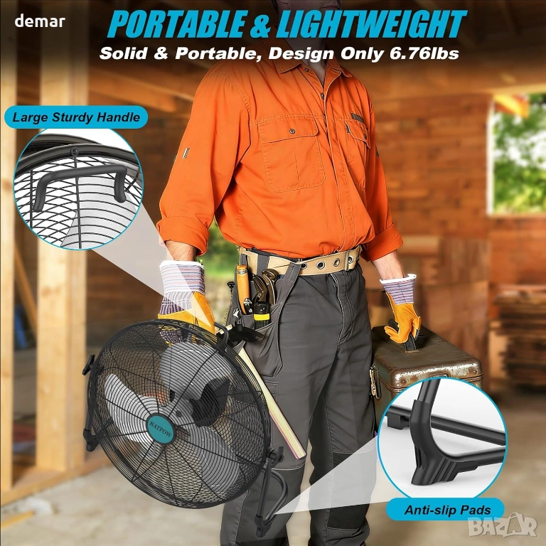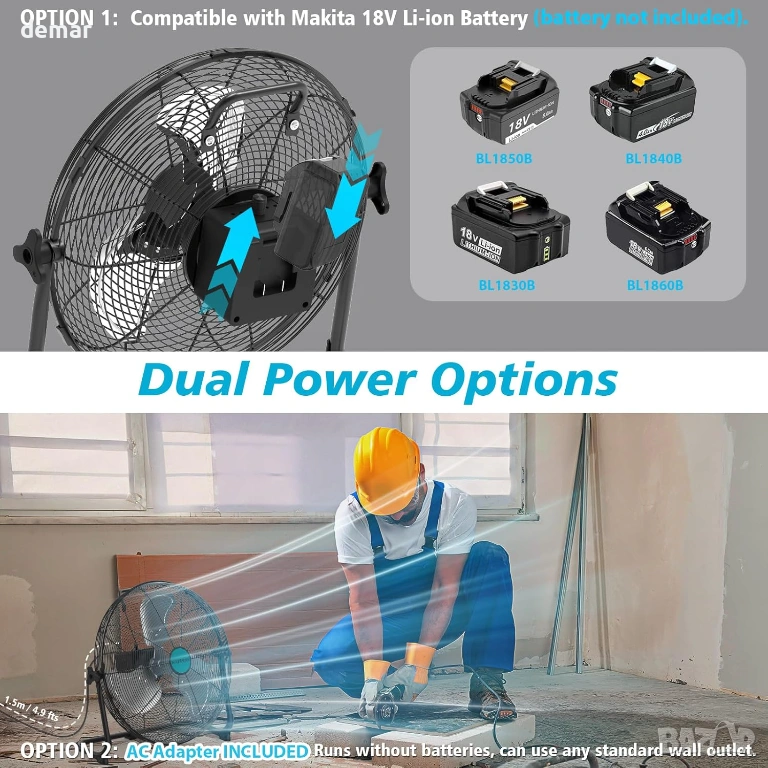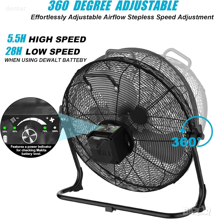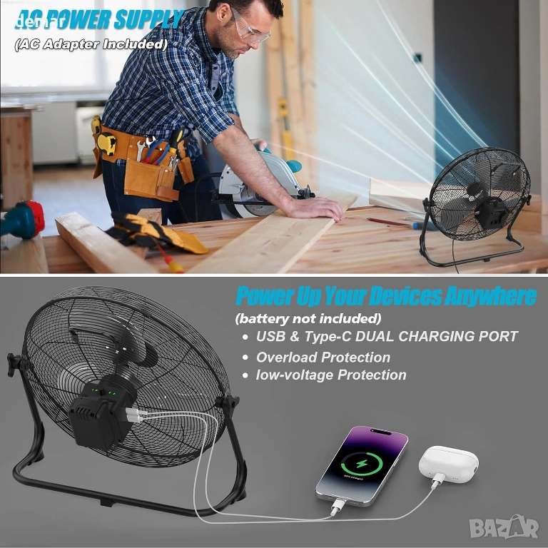 Преносим 12-инчов високоскоростен вентилатор, проектиран за многостранна употреба на закрито и открито, с двойни опции за захранване с AC адаптер или съвместими батерии Makita 18V. Безстепенният контрол на скоростта позволява прецизно регулиране на въздушния поток, осигурявайки мощно охлаждане с до 1500 CFM, като същевременно поддържа тиха работа чрез ефективен безчетков мотор и издръжливи метални перки. Напълно регулируемият 360° наклон насочва въздушния поток там, където е необходимо, което го прави подходящ за работилници, къмпинг, пътувания, събития на открито или прекъсвания на електрозахранването. Вградените USB и Type-C портове позволяват удобно зареждане на устройства, а LED индикаторите за батерията показват оставащата мощност. Изграден с противоплъзгащи подложки, защита от претоварване и ниско напрежение, както и водоустойчивост IPX4, вентилаторът осигурява стабилна, безопасна и надеждна работа в взискателни среди.