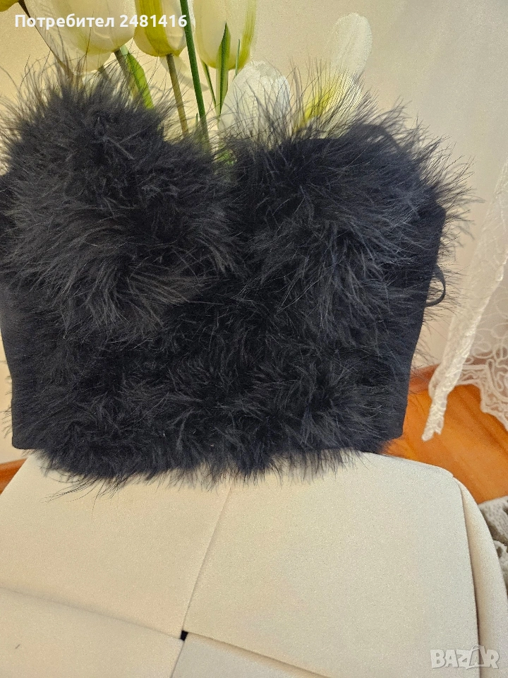 Красив топ със щраусови пера, уникален, секси и модерен 💜