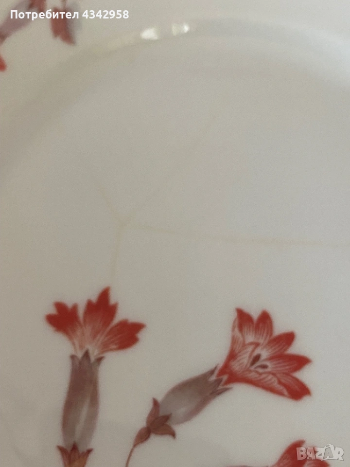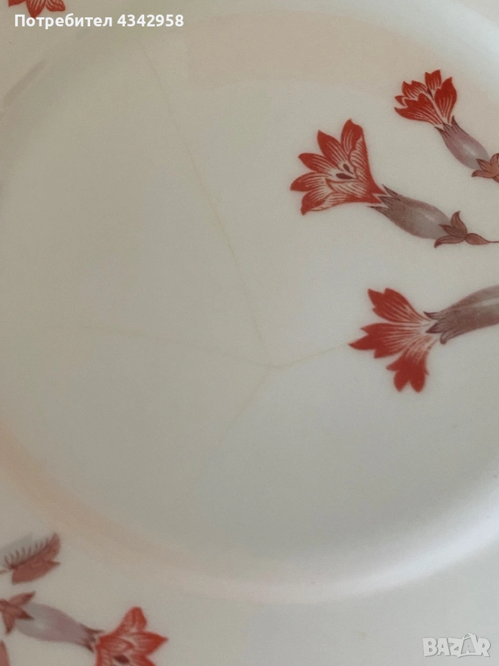Едната чиния има лека следа от употреба/недостатък (вижда се на снимката), цената е съобразена с това.