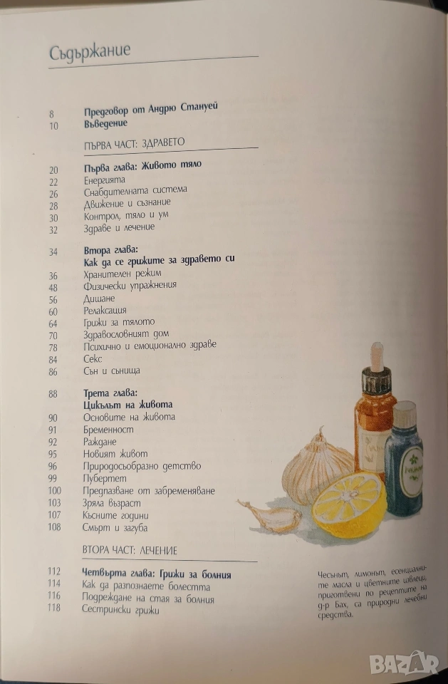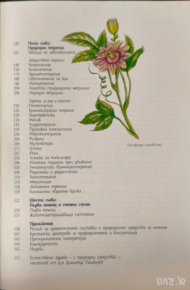 Това е една от най-пълните енциклопедии за алтернативно лечение, издавани у нас. Съдържа над 1000 природни средства и обхваща повече от 25 терапии, сред които: