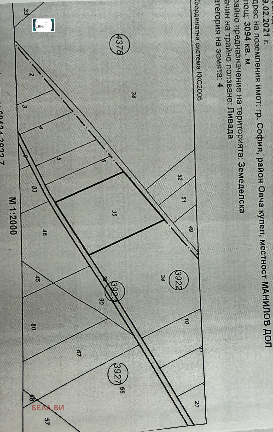 Агенция Бела Ви предлага за продажба два парцела земеделска земя в гр. София, район Овча купел, местност Малинов дол.