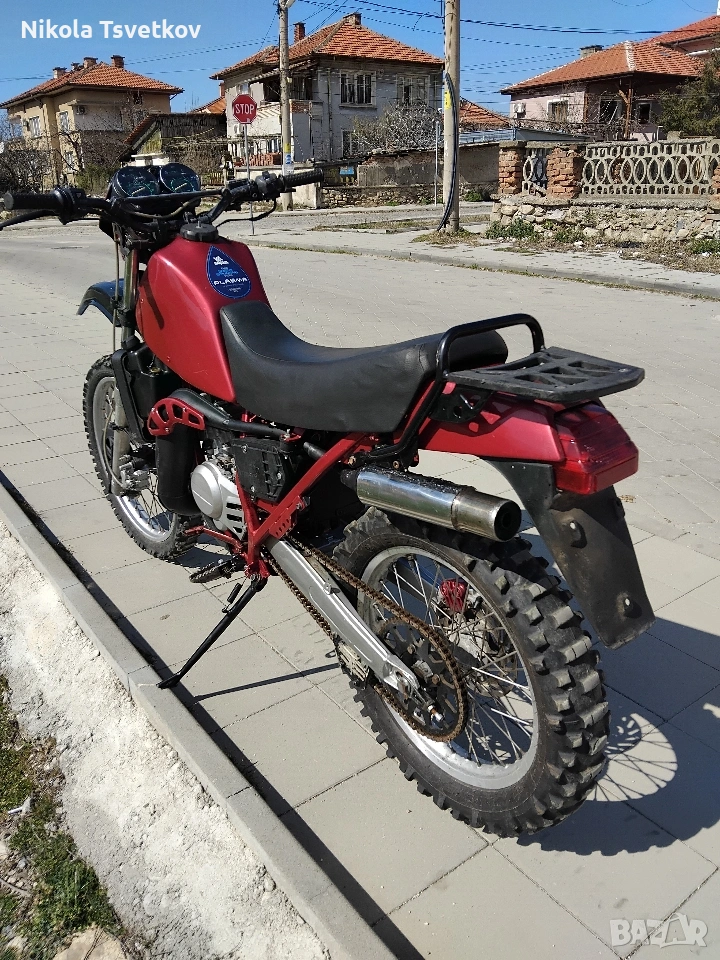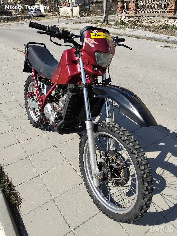 Gilera Arizona 125 RX двутактов със стартер и манивела,водно охлаждане,две дискови спирачки,пали лесно на стартер и на манивела работи и върви добре ,двигателя работи добре без шумове и тропане,съединител, скорости,окачване,спирачки са ок,има документи без прехвърляне.