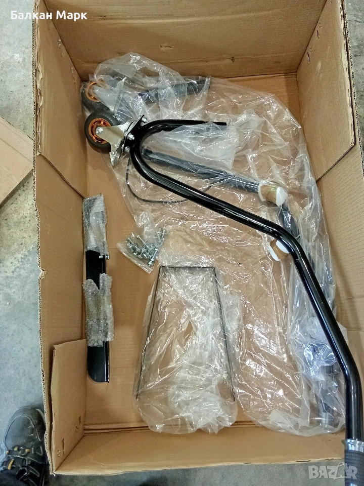 Продавам професионална електрическа количка, внос от Германия. Продуктът е част от разнообразна палетирана стока. Количката е чисто нова, не е използвана, но има леки транспортни забележки (дребни одрасквания), които са видими на снимките и не пречат на работата ѝ.