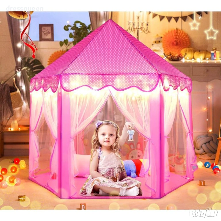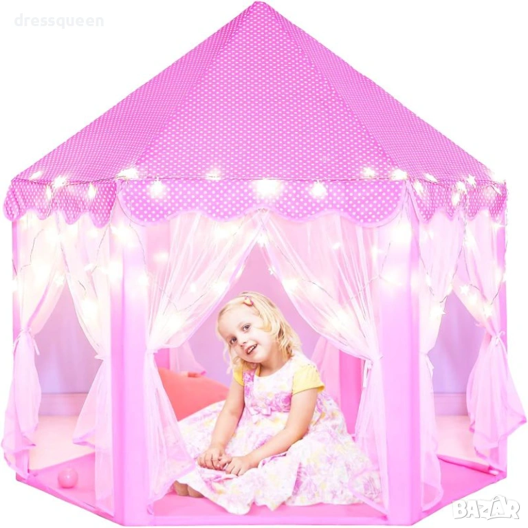Палатка Замък за Момиче (140x135 см) - Перфектната Детска Къща за Игра