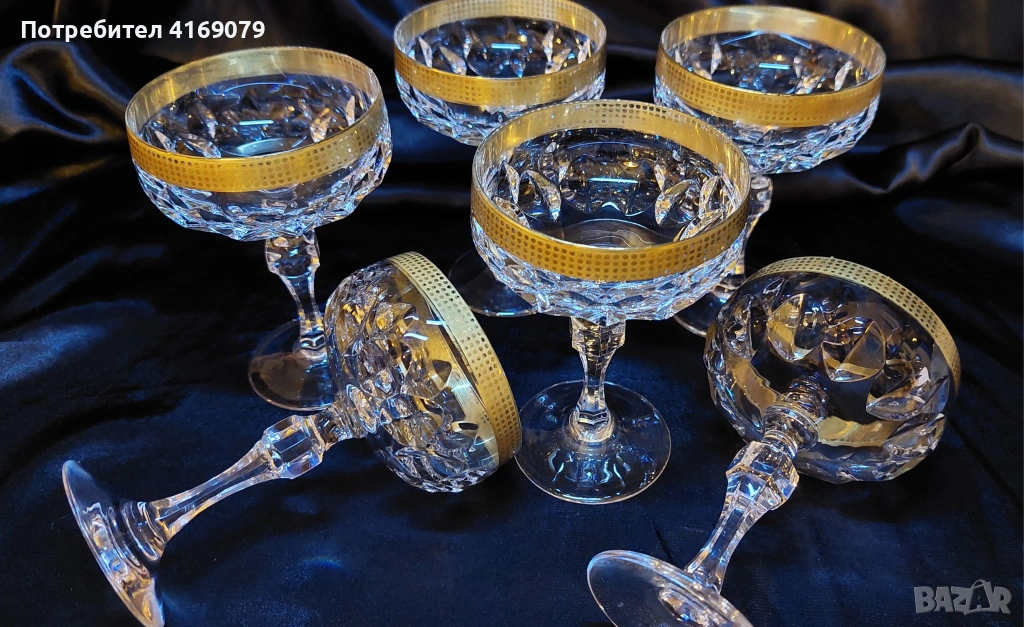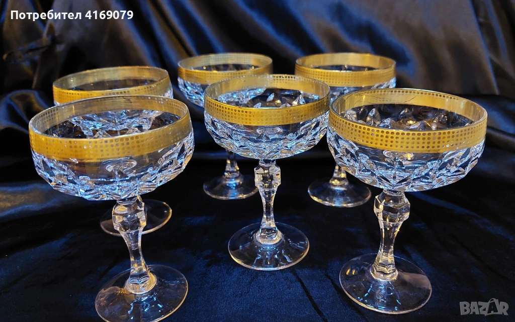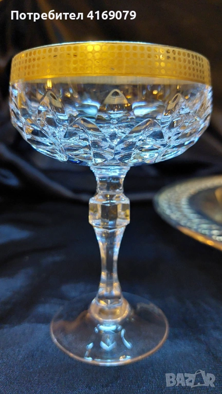 Кристални чаши със златен кант за ликьор → Обява 53811820