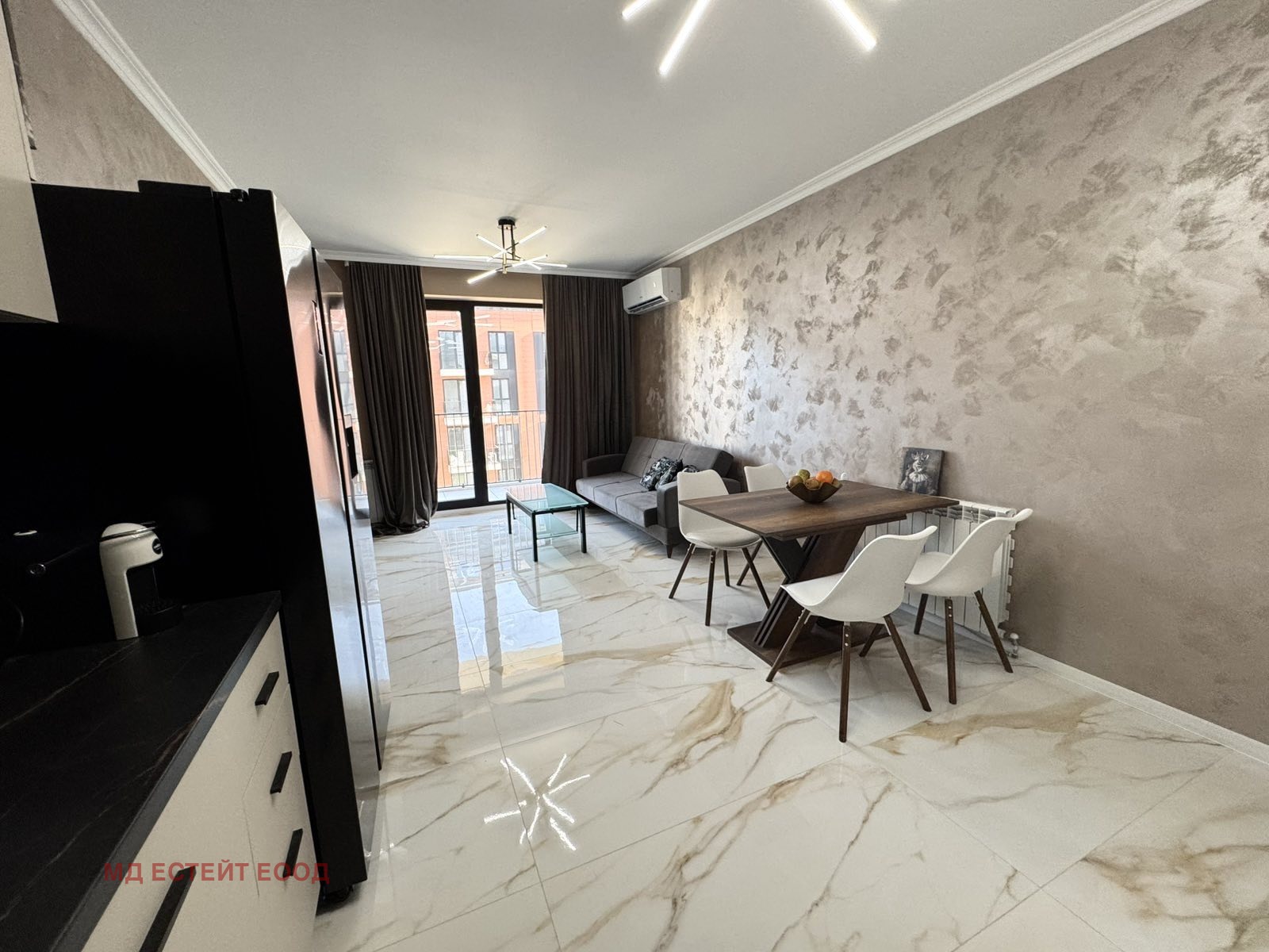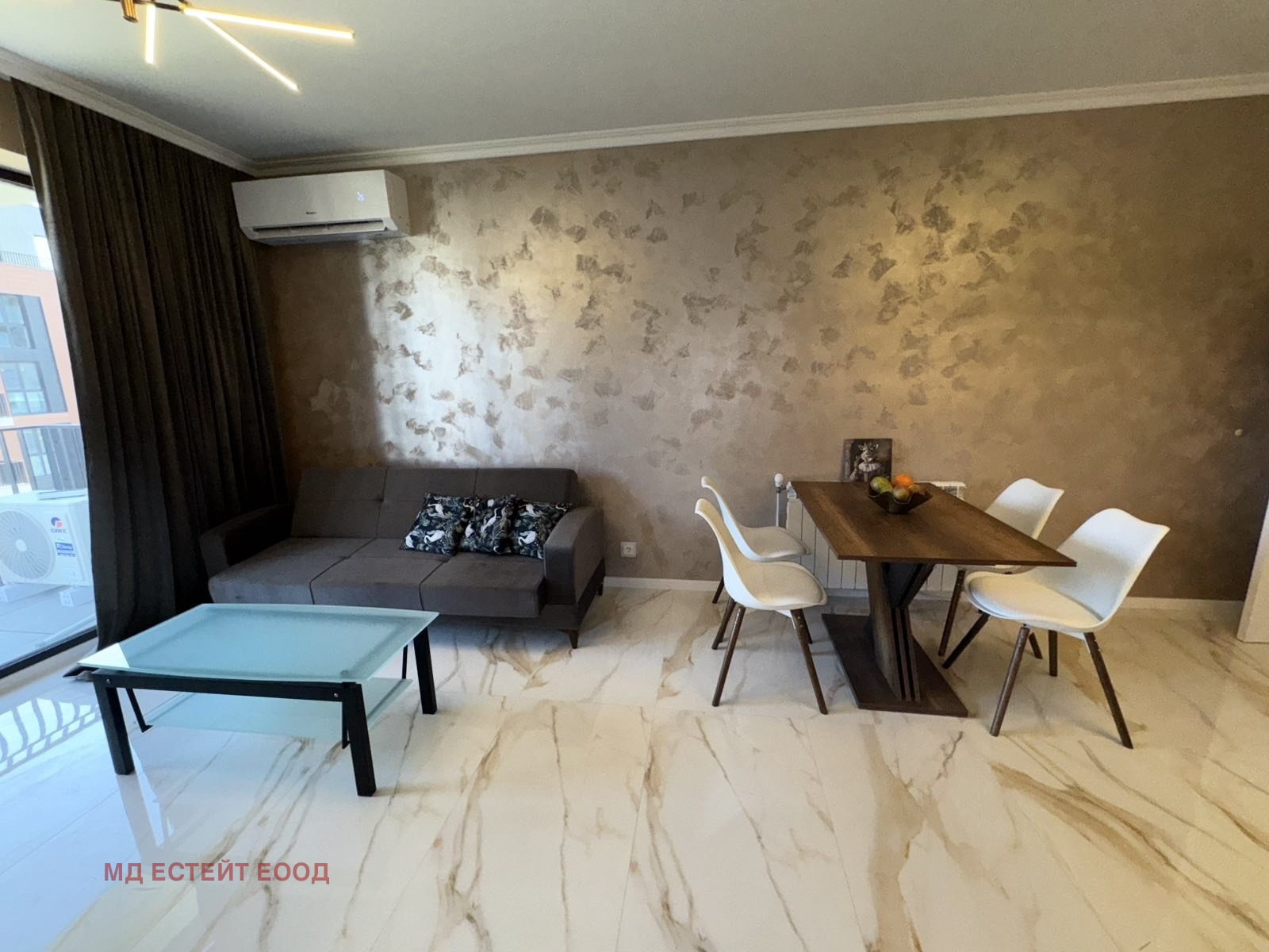 МД ЕСТЕЙТ има удоволствието да Ви представи напълно обзаведен, двустаен апартамент под наем. Апартаментът разполага с всичко необходимо за едно домакинство и се състои от просторна всекидневна с кухня,спалня, баня, антре, мокро помещение и тераса. В близост се намират множество магазини, супермаркети, спирки на градския транспорт и метростанция на пешеходно разтояние. Сградата е с отлично поддържани общи части. Към апартамента има и мазе.