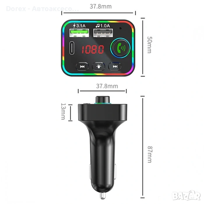 Тип: FM трансмитер с Bluetooth и MP3 плейър