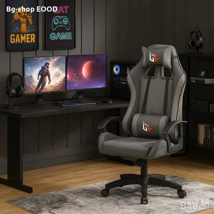 Геймърски стол за бюро, с поставка за крака, регулиране на височината, включени възглавници, ергономичен, 100 кг, сив Когато прекарвате много часове в офиса или пред компютъра, започвате да усещате колко важен е един стол, който да ви поддържа добре и да ви предлага истински комфорт. Стол, специално проектиран за игри и работа, ви помага да преминавате по-лесно през дълги сесии, независимо дали работите, учите или си почивате.