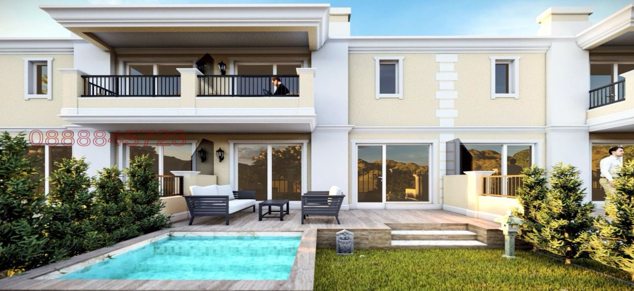 Самостоятелната къща (250 кв.м.) се състои от голяма дневна, спалня и баня с тоалетна на първи етаж и три спални и три бани с тоалетни на втори етаж. За всеки от етажите в самостоятелната къща е предвиден отделен вход.