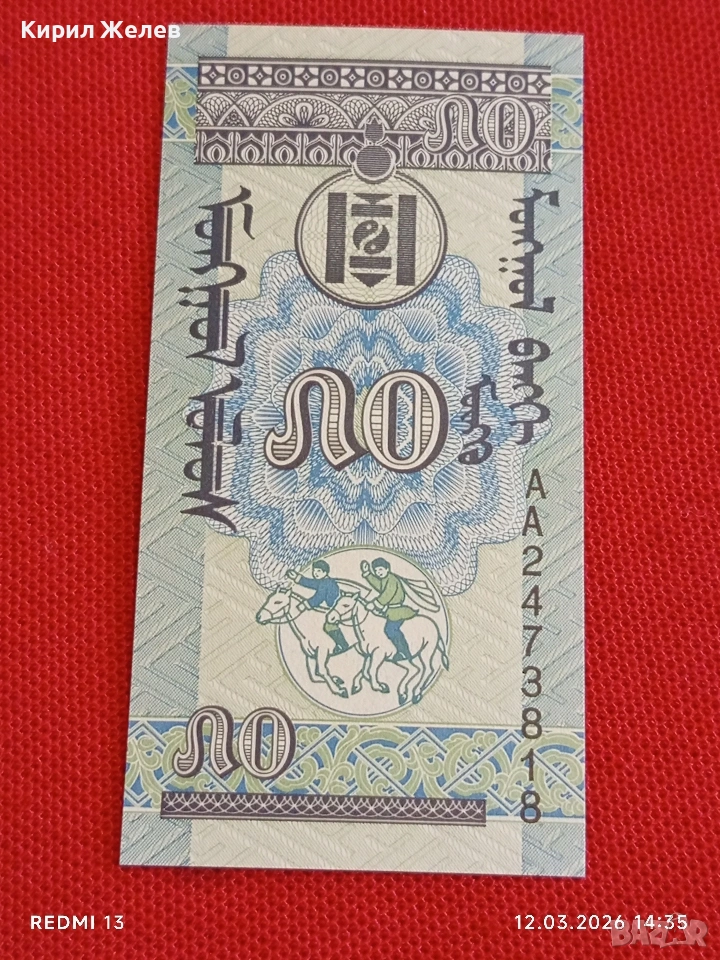 Банкнота МОНГОЛИЯ много красива перфектно състояние непрегъвана за КОЛЕКЦИЯ ДЕКОРАЦИЯ 54037 → Обява 53812124