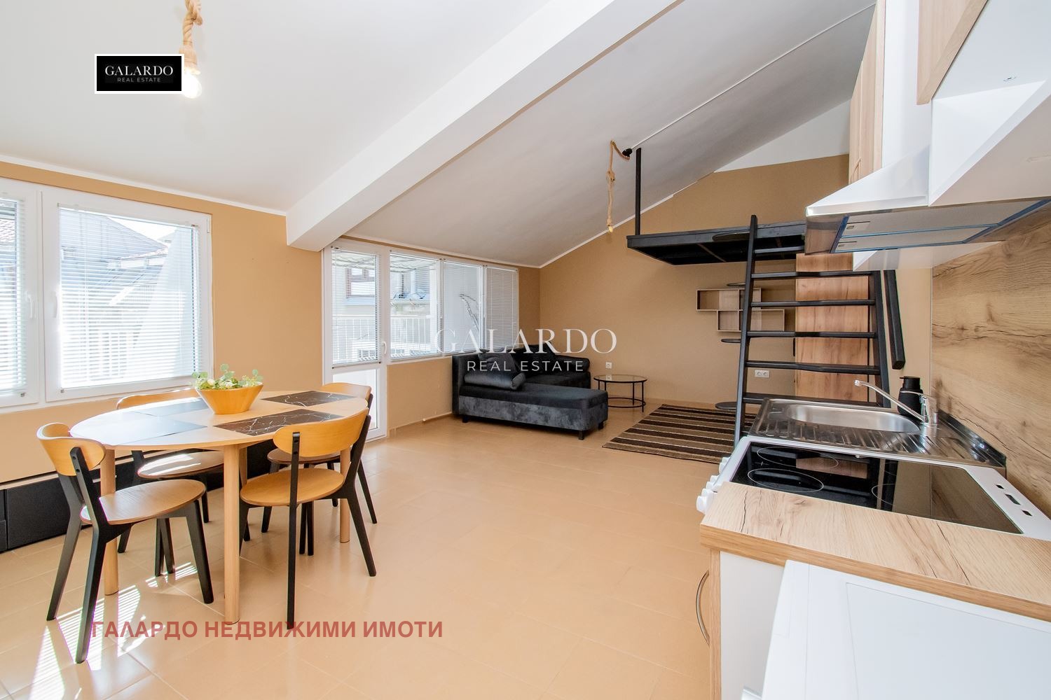 Светла основна стая с обособена дневна, кухня и спален кът