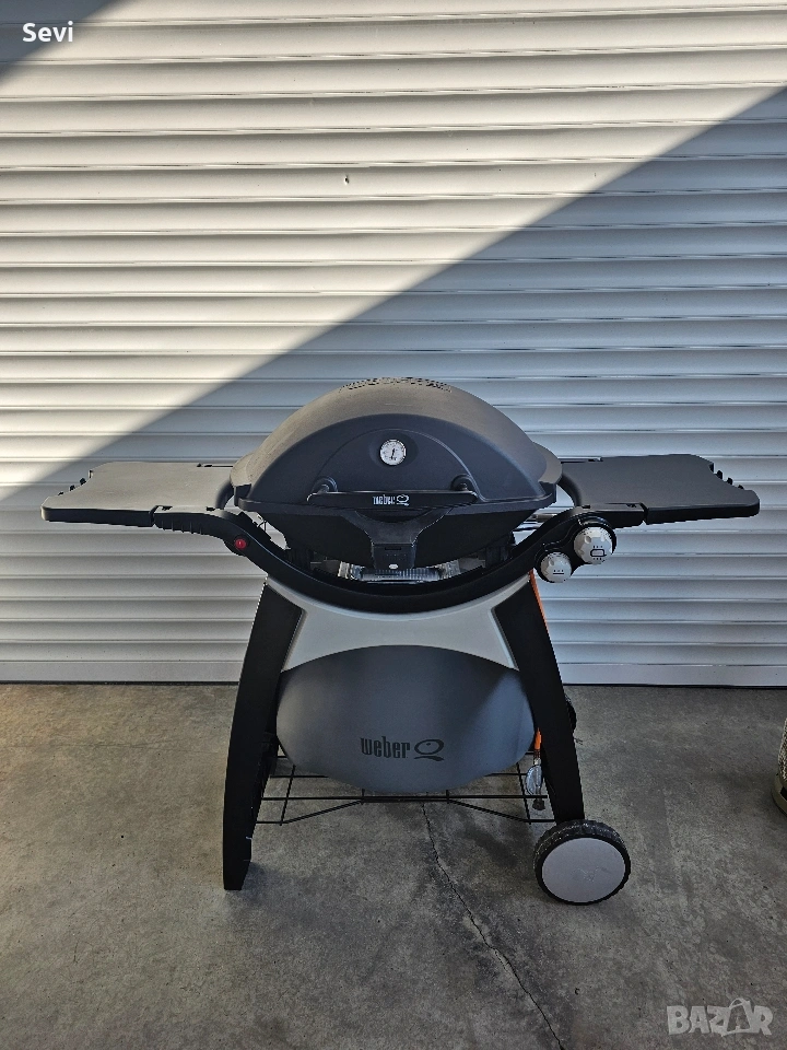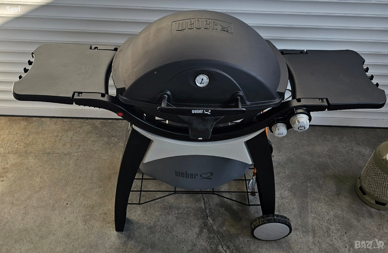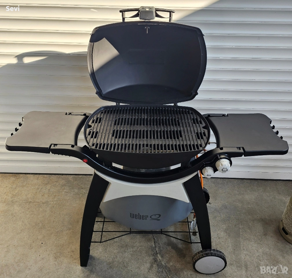 Газово барбекю Weber® Q320. • Размер на площта за готвене: 2835 cm² • Чугунени скари 63х45 cm – осигуряват равномерно разпределение на топлината • Тяло и капак от лят алуминий • Удобна стойка - поставя барбекюто на удобна работна височина • Колела - за лесно преместване • Място за газова бутилка • Електронно запалване • 2 газови горелки от неръждаема стомана 6.36 kW • Вграден термометър на капака • Два удобни сгъваеми странични плота • Контролен бутон за прецизно настройване на температурата • Подвижна тава - осигурява лесно изхвърляне на мазнината от готвенето •Автоматично фенерче на капака • Маркуч, адаптор за газ, газов регулатор - за газова бутилка за многократна употреба • Размер при отворен капак В: 141/ Ш: 127.5/ Д: 76.2 cm.