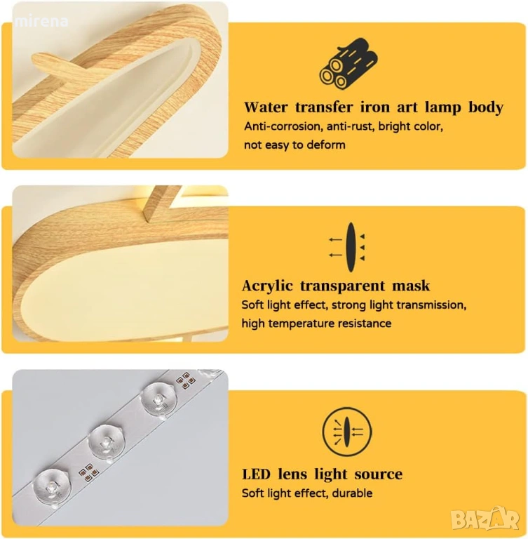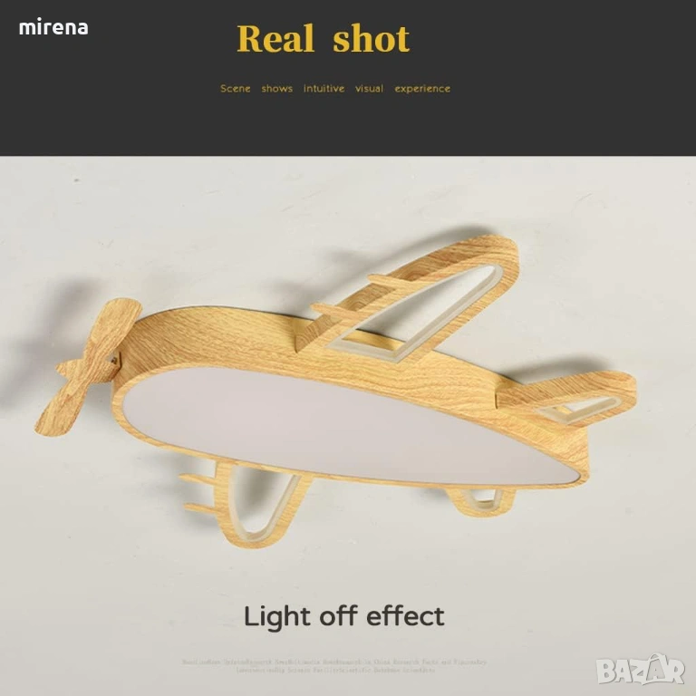 Дизайн: Минималистичната, креативна имитация на дървесни шарки, метал, ковано желязо, форма на самолет на таванната лампа за детска стая предлага на детето ново преживяване и създава спокойна и щастлива атмосфера.