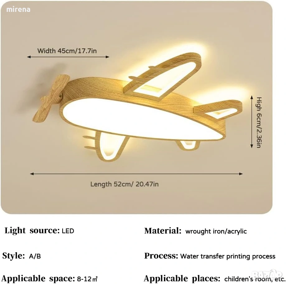 LED таванно осветление с димируема светлина и дистанционно управление, детско таванно осветление с анимационен самолет, метално и акрилно, таванна лампа за детска стая, осветително тяло за детска спалня, декоративно осветление, полилей 52 см, A