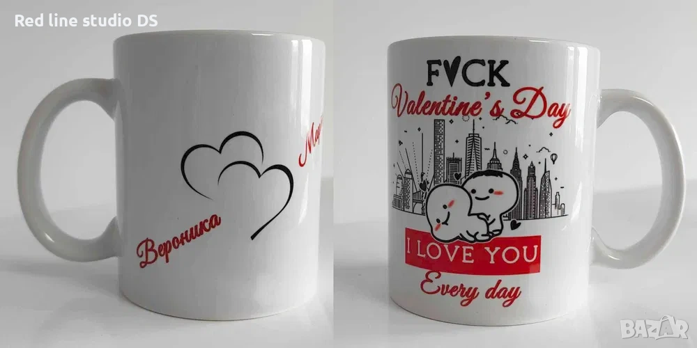 Чаша за подарък за 14.02. персонализирана с Вашето име и името на половинката Ви.