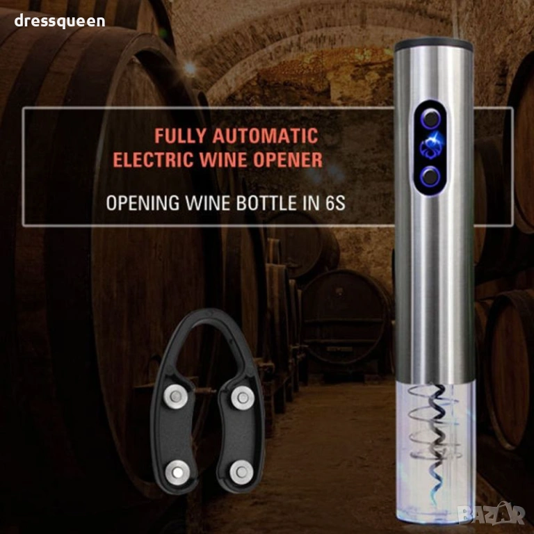 Отварачка за бутилки вино електрическа, която прави живота по-лесен. Този електрически тирбушон за вино работи с лесно сменяеми батерии (непрезареждащи се), което гарантира, че винаги ще имате захранване.