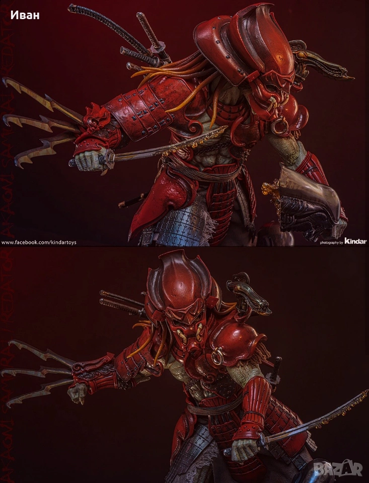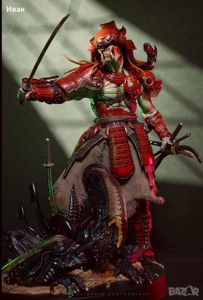 Hot Toys Deluxe - Колекционерска фигурка на Akaoni Samurai Predator Original and Deluxe version